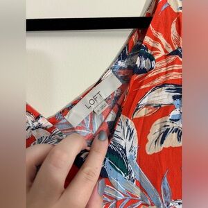 MSRP $57 Peplum blouse from LOFT. Perfect for spring and summer occasions, casual or professional settings. Pair with colorful pants or blue jeans. Lightweight and breezy. V neck elongates your shape and peplum gives a flattering fit. Perfect blouse to wear on vacation or at the weekend cookouts!