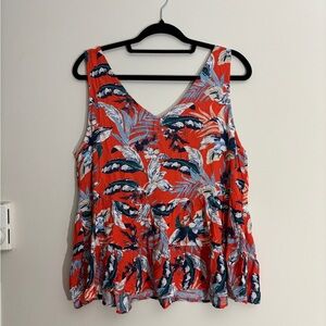 MSRP $57 LOFT Botanical Double V Peplum Tropical Botanical Blouse Sz M