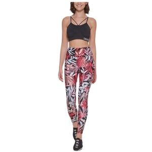 MSRP $70 Dkny Printed High-Waist 7/8 Legging Jungle Bloom Bubblegum Pink M