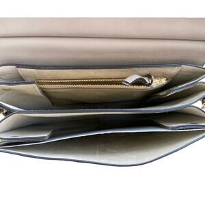 This handbag is made of top-grain leather. The grain side was sanded to provide the leather with its velvet-like finish. Depending on the degree of finishing, this technique may produce a leather called nubuck or velvet leather. This material is fragile, particularly with respect to colors.