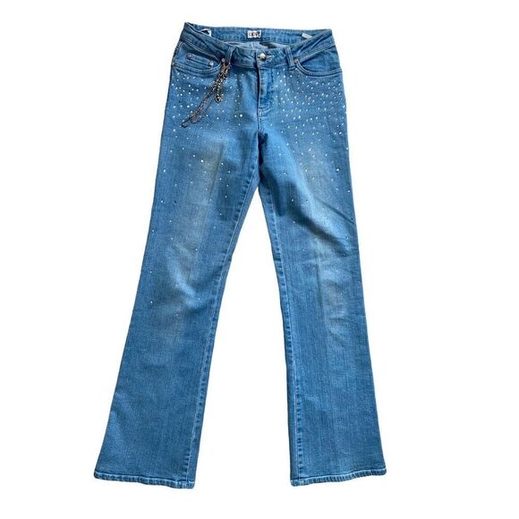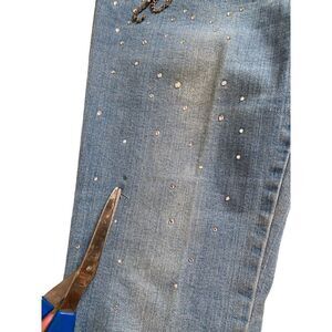 MSRP $198 STUNNING CACHE S/6 SILVER STUDDED BLUE JEANS Chain Sparkle Y2K.