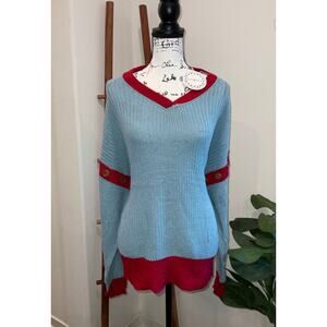 MSRP$59 Umgee Blue Red Colorblock Button Sleeve Knit Sweater Size XL QUICK SHIP