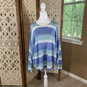 MSRP$99 Sanctuary Blues & White Tie-Dye Stripes Sweater Lightweight NWT Sz 1X