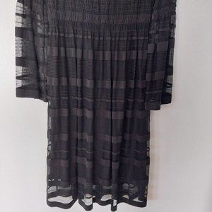 M.S.S.P. Max Studio Mesh Stripe Dress with Smocking Detail & Flare Sleeves NWOT
