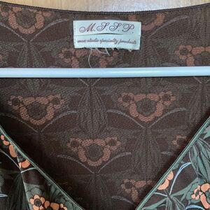 Max Studio Specialty Products lightweight deco-inspired print blouse has comfortable elastic for highlighting ‘femme’ curves, fun ¾ length sleeves. Flattering fit and drape, lined. Size S