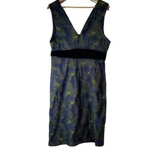 M.S.S.P. Palm Print Renee Cocktail Dress Sleeveless Sheath Navy Green Black XL