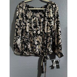 MST Women's Floral Metallic-Chiffon Balloon-Sleeve Top Size M NWT