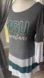 Stylish MSU Spartans tunic top in gray and white. Features bold lettering and a comfortable fit. Game day couture Grey and green striped MSU Spartans long sleeve tunic slight cracking on design not bad #collegiate #football #collageball #MSU #Michigan