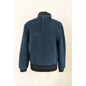 M.Singer Men's Mock Neck 1/4 Placket Fleece Navy Faux Sherpa Pullover Size L