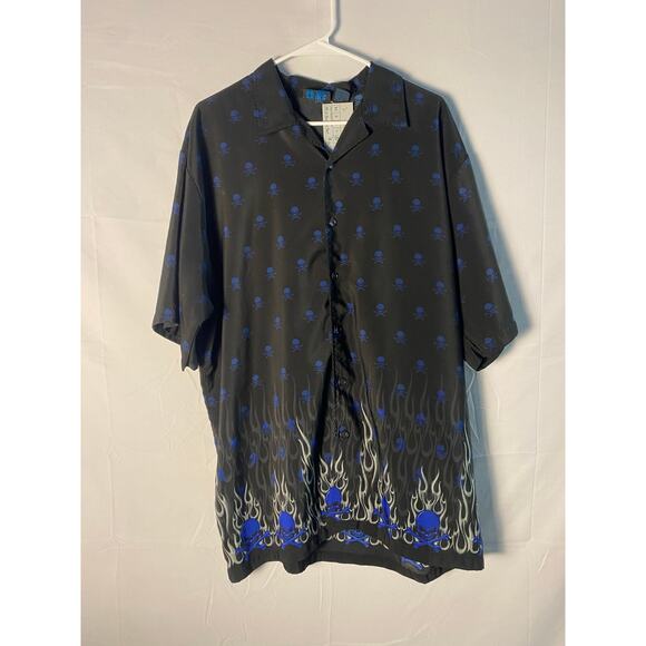 MT:2 Flame Skulls Print Black Button Up Short Sleeve Men's Size XL