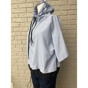 MTA Sport Blue Black Mesh Hemline Hooded Windbreaker Size L