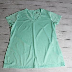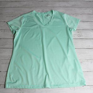 This lightweight mesh tee is light green with short sleeves and a v-neck. It is in excellent hardly used condition.