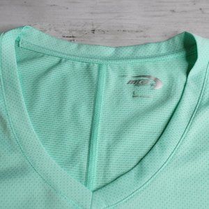 MTA Sport Women's Short Sleeve Athletic T Shirt Top Size L Green V Neck