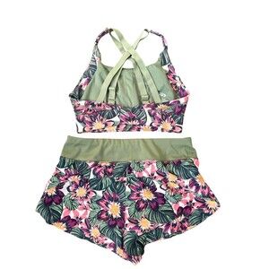 MTA Sports Two Piece Green Floral Matching Athletic Wear Set Sports bra M