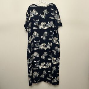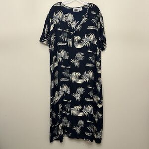 MTB Meant To Be Short Sleeve Midi Shift Dress Womens XL Blue Tropical Elephant