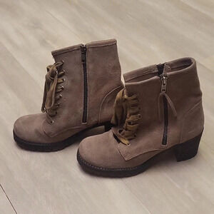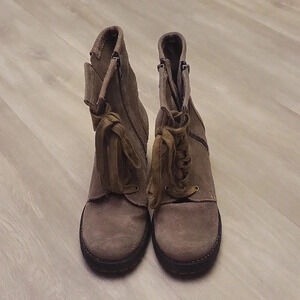 MTNG Suede Grey Double Zip Lace Up Chunky Heel Boots Womens Size 37