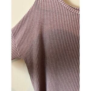 MTS Blouse Women Size Large Brown White Checked Tunic Long Sleeve