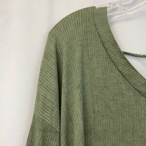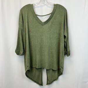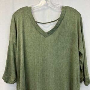 MTS Womens Blouse Green 3/4 Sleeve V Neck Back Slit Ribbed Pullover S