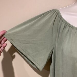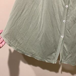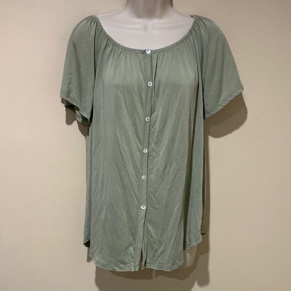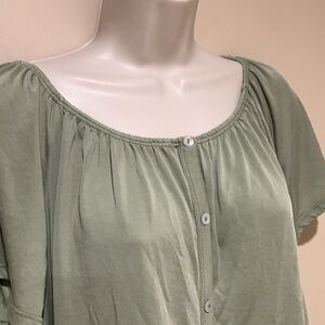 Lightweight, super soft & super stretchy! Buttons down the front. Cute sleeves & elastic neckline. Nice color too!!! LP-G