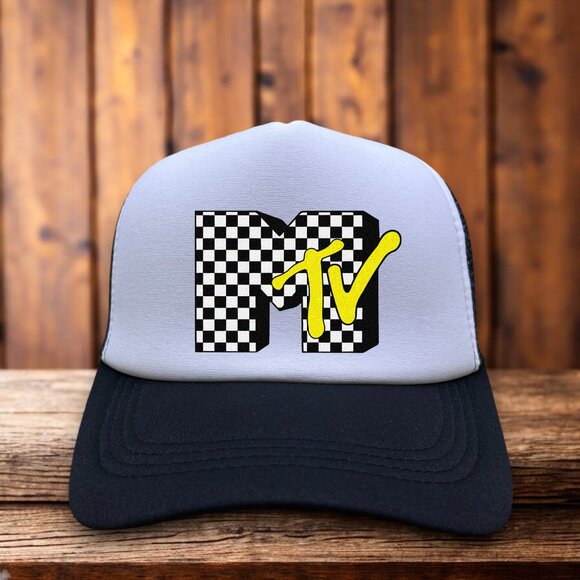 MTV Checkers Mens Trucker Hat Black Snapback 90s Retro TV Skate Punk Ball Cap