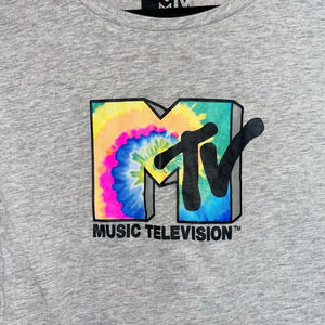 MTV tie-dye cropped tee. In excellent condition! Crew neckline. Short sleeves. Small slits on sides of hemline. Cropped. Classic MTV logo on the frontside with bright & bold tie-dye. Heather gray color. Size xlarge.