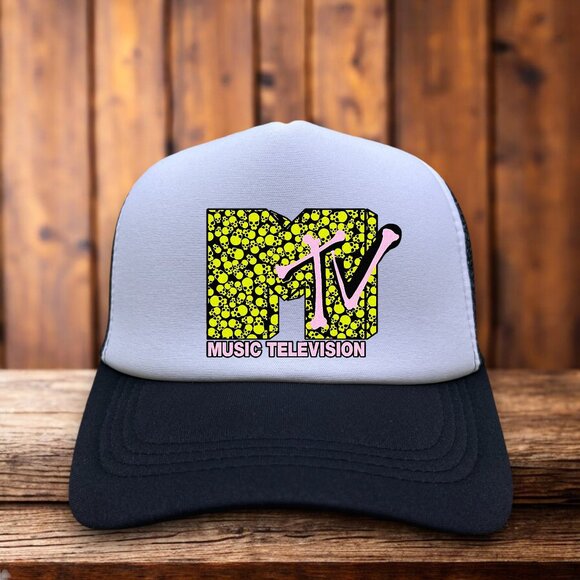 MTV Skulls Mens Trucker Hat Black Snapback 80s 90s Retro TV Throwback Logo Cap