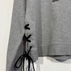 MTV Womens Gray I Want My MTV Cropped Sweatshirt XL Lace up peek a boo sides