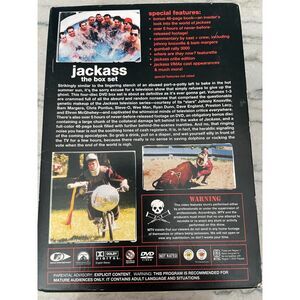 MTV's JACKASS the box set, three DVD's with Bonus Disc, and Photo Booklet