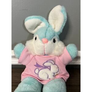 MTY International Blue Bunny with Pink Tee Bunny Plush Previously loved and in gently used condition from a smoke/pet-free home.