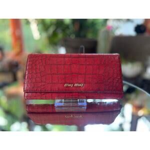 This MÍU MÍU Embossed Crocodile Lux Continental Wallet in Azalea is in excellent pre-loved condition!