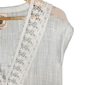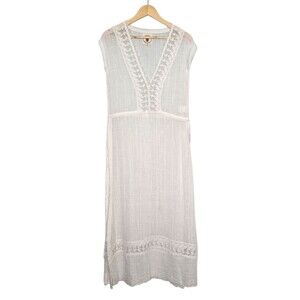 MUCHE ET MUCHETTE White Boho Gauze Cover Up with Open Sides starting at hip level. Semi Sheer. One Size. Great pre-owned condition with one small light discoloration on front waist (see photo).