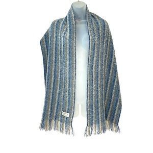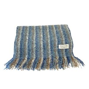 MUCROS MUCKROSS WEAVERS Unisex Blue & Brown Wool Blend Boucle Knit Fringed Scarf
