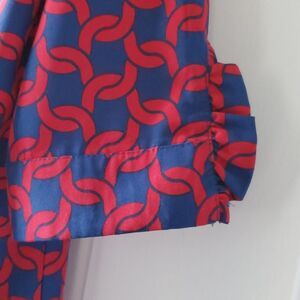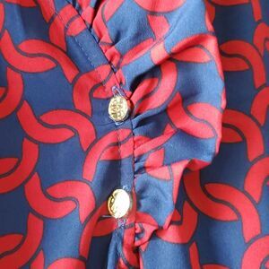 MUD PIE BLUE RED RUFFLE NECK SHIFT DRESS SIZE LARGE CHAIN PATTERN PREPPY GOLD