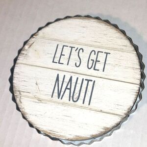 MUD PIE Drink Coaster Beach Coastal Nautical Theme Shiplap Metal Rim Gift Set