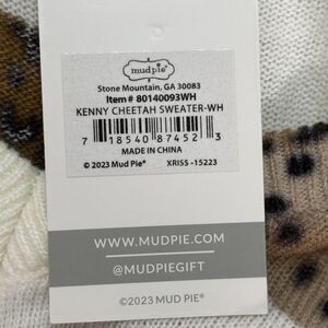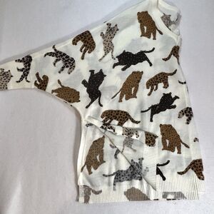 MUD PIE Kenny Cheetah Sweater Oversized Boxy V Neck New