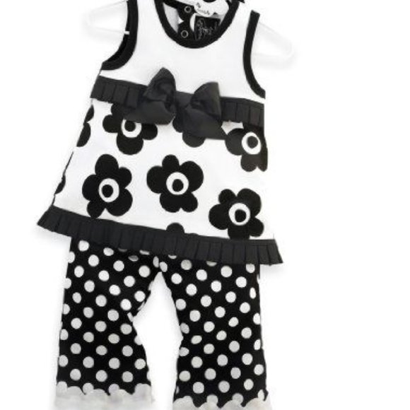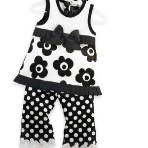 MUD PIE TRES JOLIE BLACK WHITE FLOWER 2 PC OUTFIT