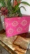 MUDPIE oversized waxed canvas clutch. Hot pink with metallic gold block-printed medallion pattern, zippered top, 4” fancy brass-tones metal tassel zipper pull has been added on. Unlined. #barbicore Measurement: 12” wide, 9” tall. Vintage.