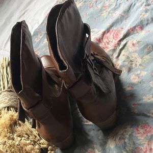 Cute MUDD/Cowgirl Styled heeled ankle boots. Medium brown, size 9.