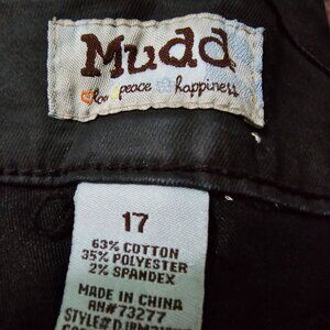 MUDD Black Satin Denim Pants with zippers at bottom of leg Size 17