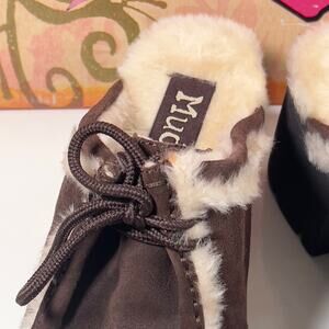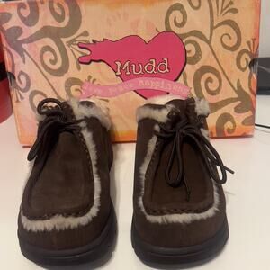 MUDD Dark Brown Faux Suede Fur Lining Mule Slipon Chunky Platform Size 9.5M Shoe
