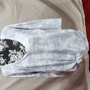 cute tye dye looking top white and gray unfinished edge look great condition smoke-free home