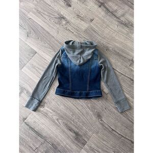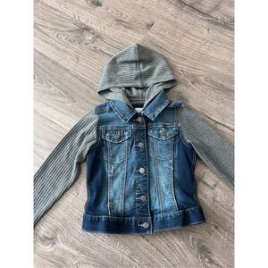 MUDD Girls Size 10 Blue Gray Denim Jean Jacket Coat Button Up w/ Hood
