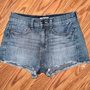 MUDD High-Waisted Frayed Hem Denim Shorts Sz 5 Distressed