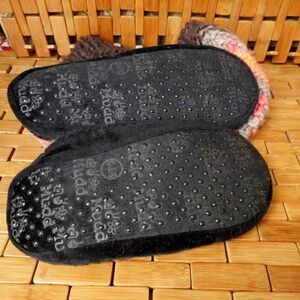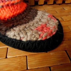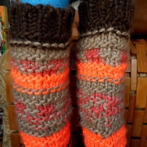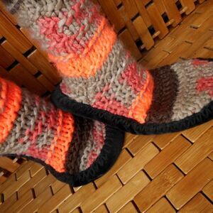 MUDD Neon Orange, Brown & Gray Vertical Striped Knit Slipper Socks Size 5/6