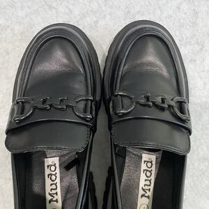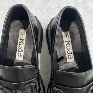 MUDD Roey Chunky lug sole loafers black faux leather chain Wednesday Shoe Goth Y2K Sz 7