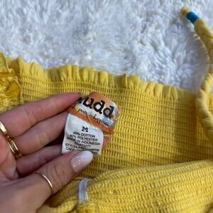 MUDD Vintage Y2K Yellow Halter Graphic Top Womens in Side Medium Cotton Blend