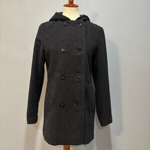 MUDD Y2K fall vintage dark gray wool hooded peacoat, coat, jacket, size medium