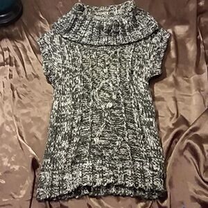 Short sleeve. Long shirt/ sweater dress knit dark grey and white