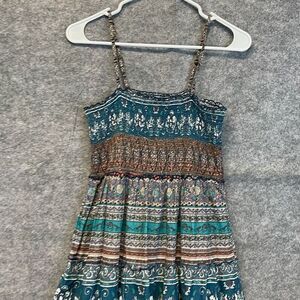 MUDD Summer Dress Medium Multicolor Floral Striped Midi Smocked Sleeveless Sun