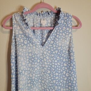 MUDPIE Ferah Tank Size Small Blue Leopard Ruffle Collar Tank Top